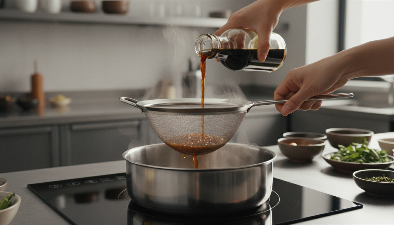 4. 불을 끄고 체에 걸러 건더기를 제거합니다.