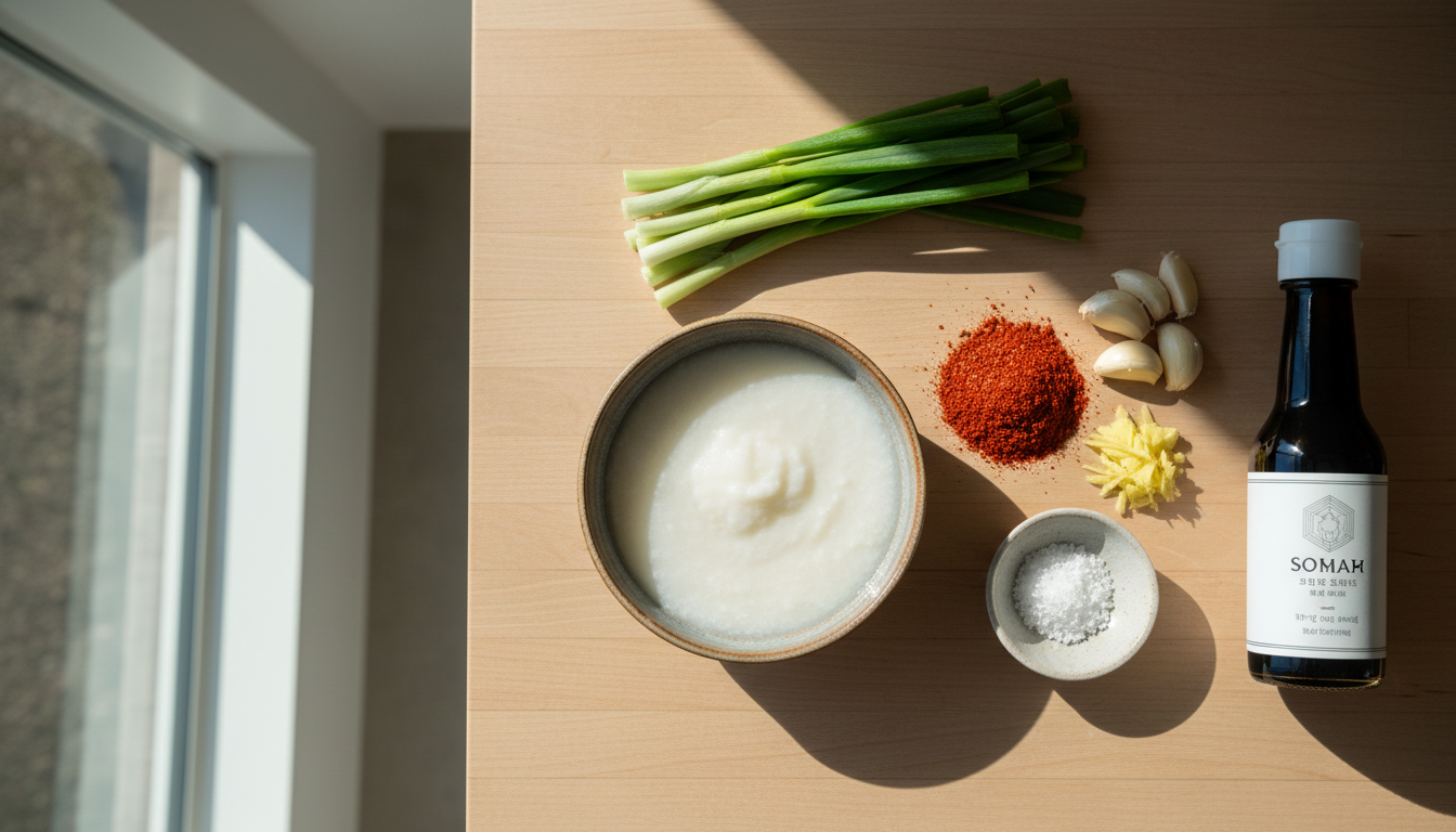 | 찹쌀풀 | 3큰술 | 양념 점도 조절, 발효 도움 |