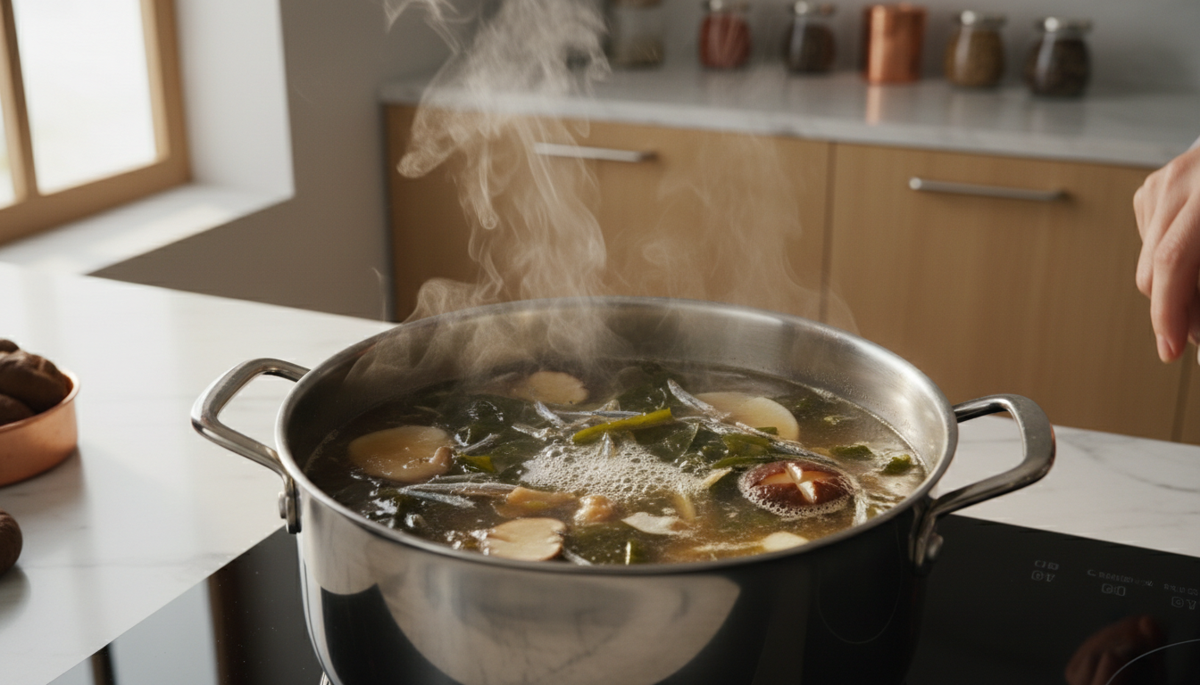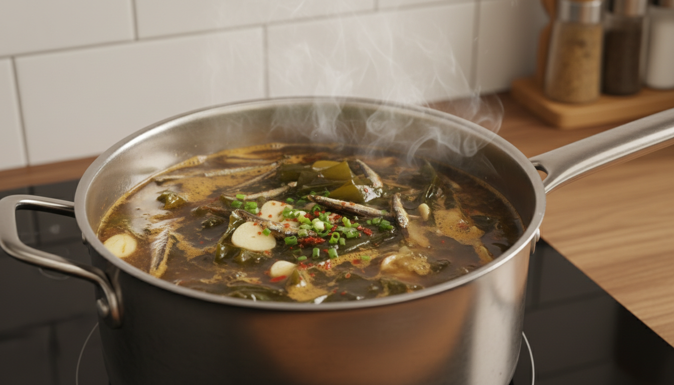 바쁘다면 시중에 파는 국물 티백(멸치·다시마 혼합)을 활용해도 됩니다. 시간이 없을 때는 물에 멸치액젓 한 방울 떨어뜨리는 것만으로도 국물 깊이가 달라집니다.