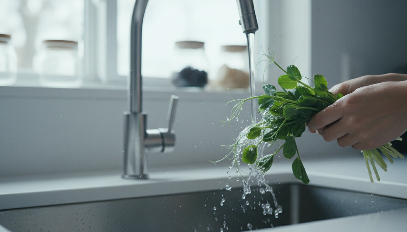 손질한 엄나무순을 흐르는 물에 부드럽게 씻어줍니다. 순이 연하기 때문에 너무 세게 주무르면 쉽게 상할 수 있으니 살살 헹궈주세요.