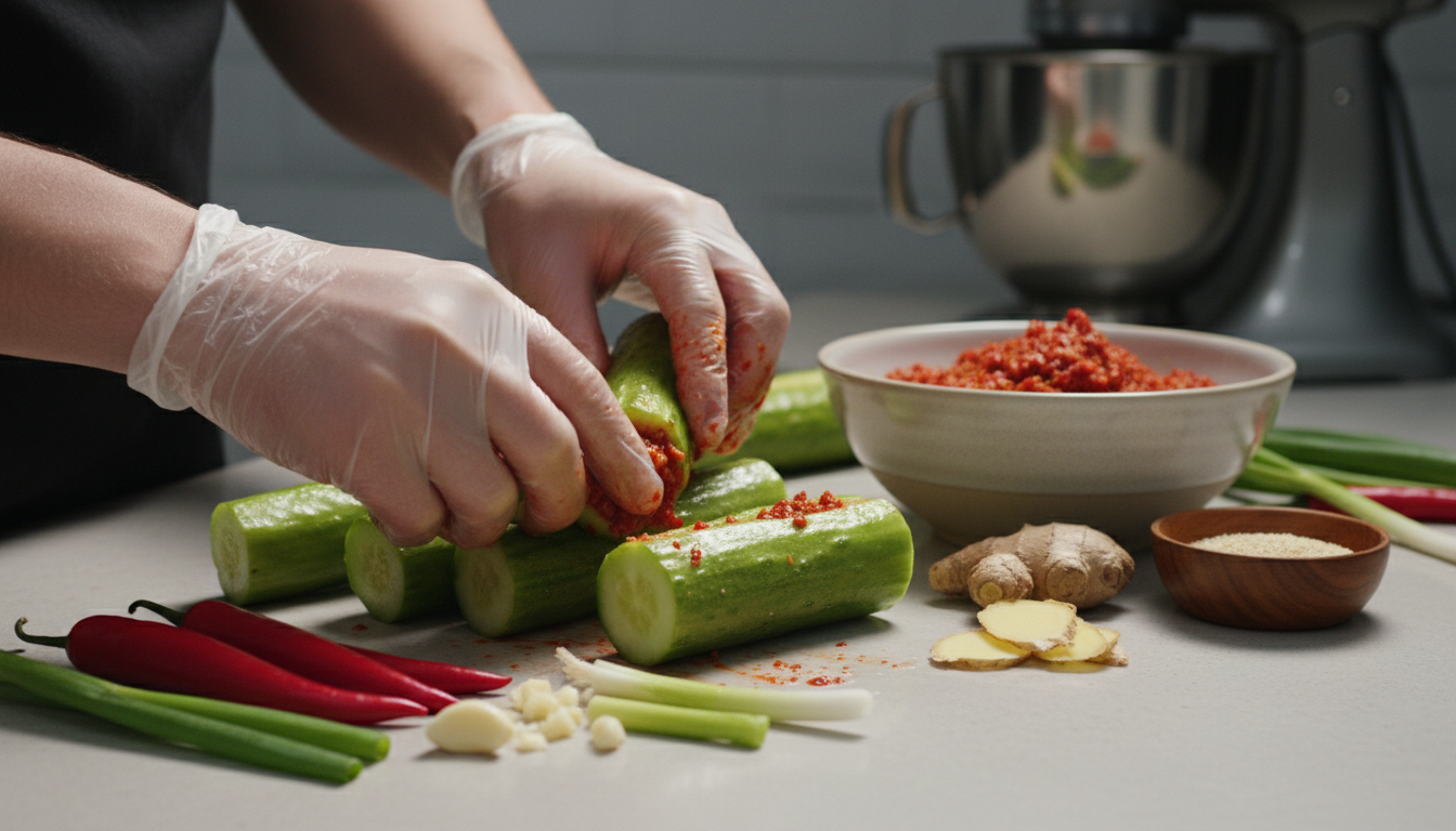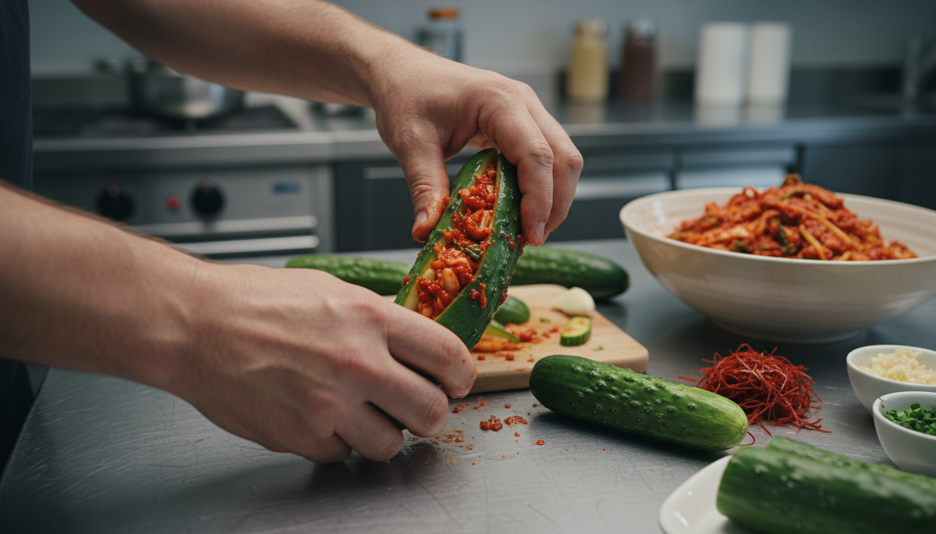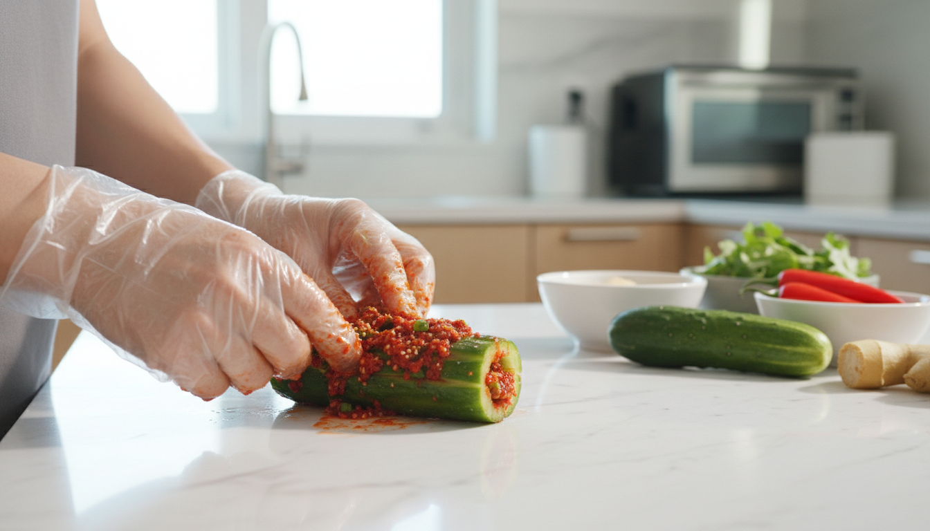 가장 흔한 원인은 절임 시간이 너무 길었거나 헹굴 때 꽉 짜서 섬유질이 눌린 경우입니다. 또한 오이를 너무 일찍 구매해 오래 보관했다면 선도 자체가 떨어진 것일 수도 있습니다. 오이소박이 맛있게 담그는법의 기본은 신선한 오이를 구입한 당일 또는 다음 날 바로 담그는 것입니다.