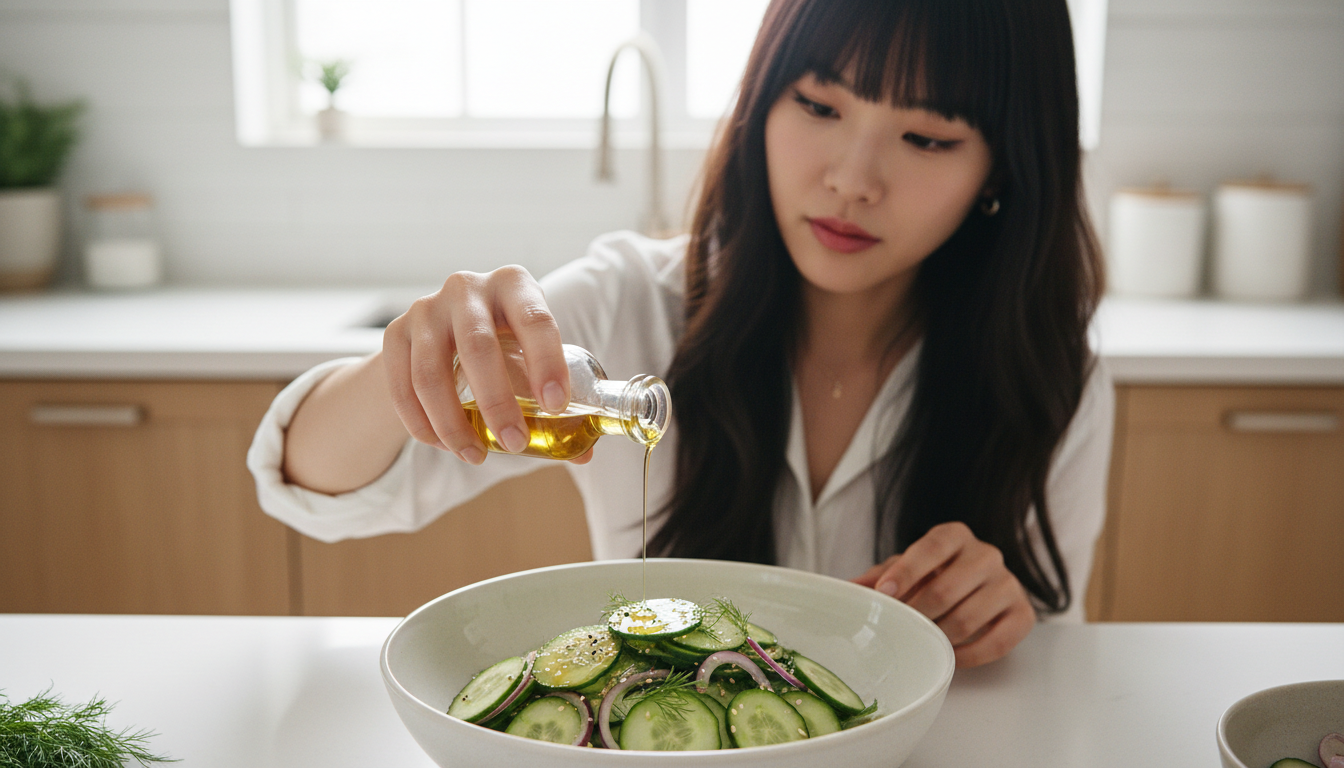 💡 팁: 식초를 넣으면 새콤달콤한 스타일의 오이무침이 되고, 생략하면 일반 무침 스타일이 됩니다. 어린 아이가 있는 집에서는 고춧가루를 줄이고 참기름과 간장 비율을 살짝 높이면 담백하게 즐길 수 있어요.